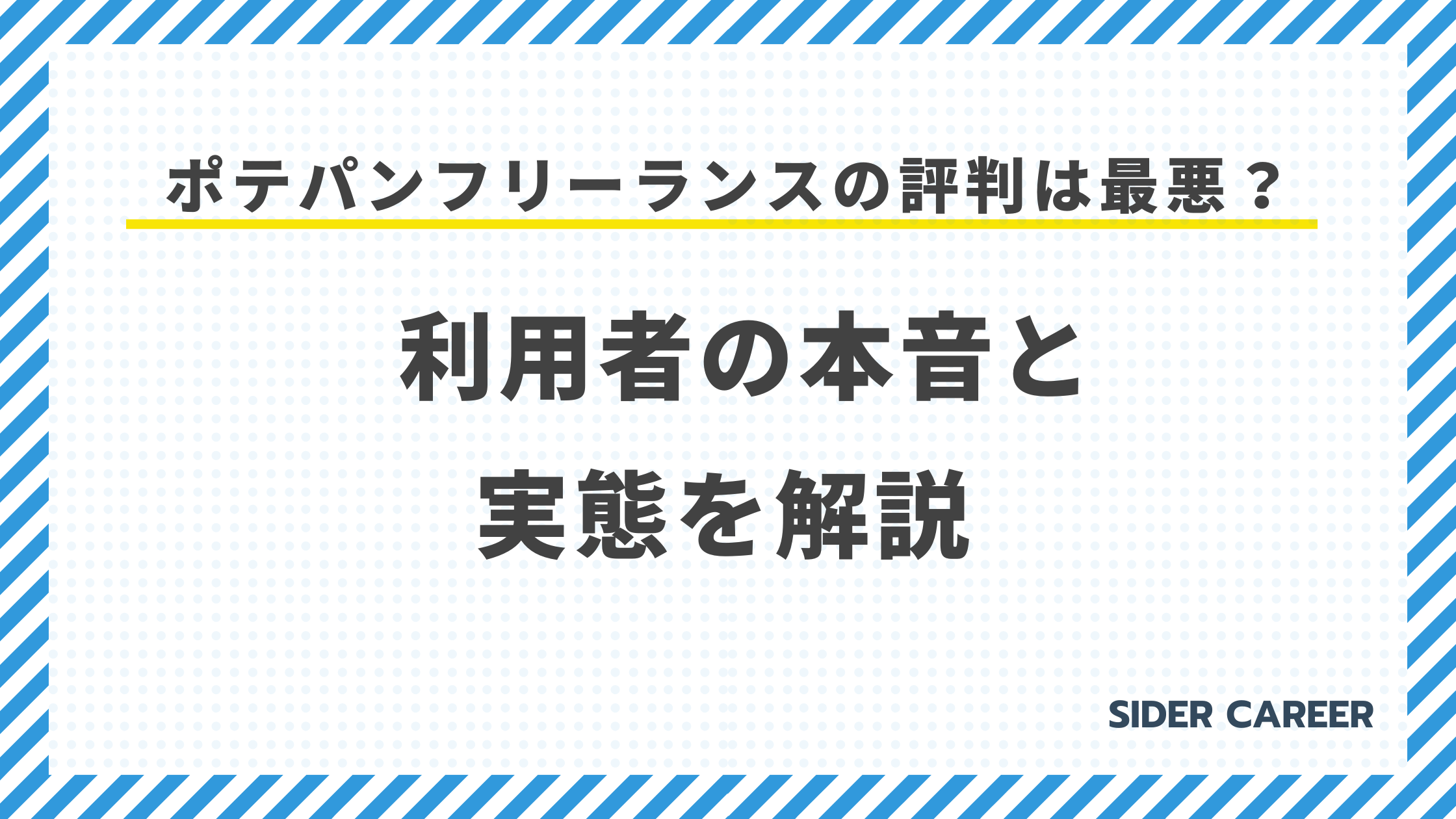 ポテパンフリーランスの本当の強みと弱みをしっかりお伝えし、さらに「あなたが利用すべきかどうか」を判断できる材料をご提供します。